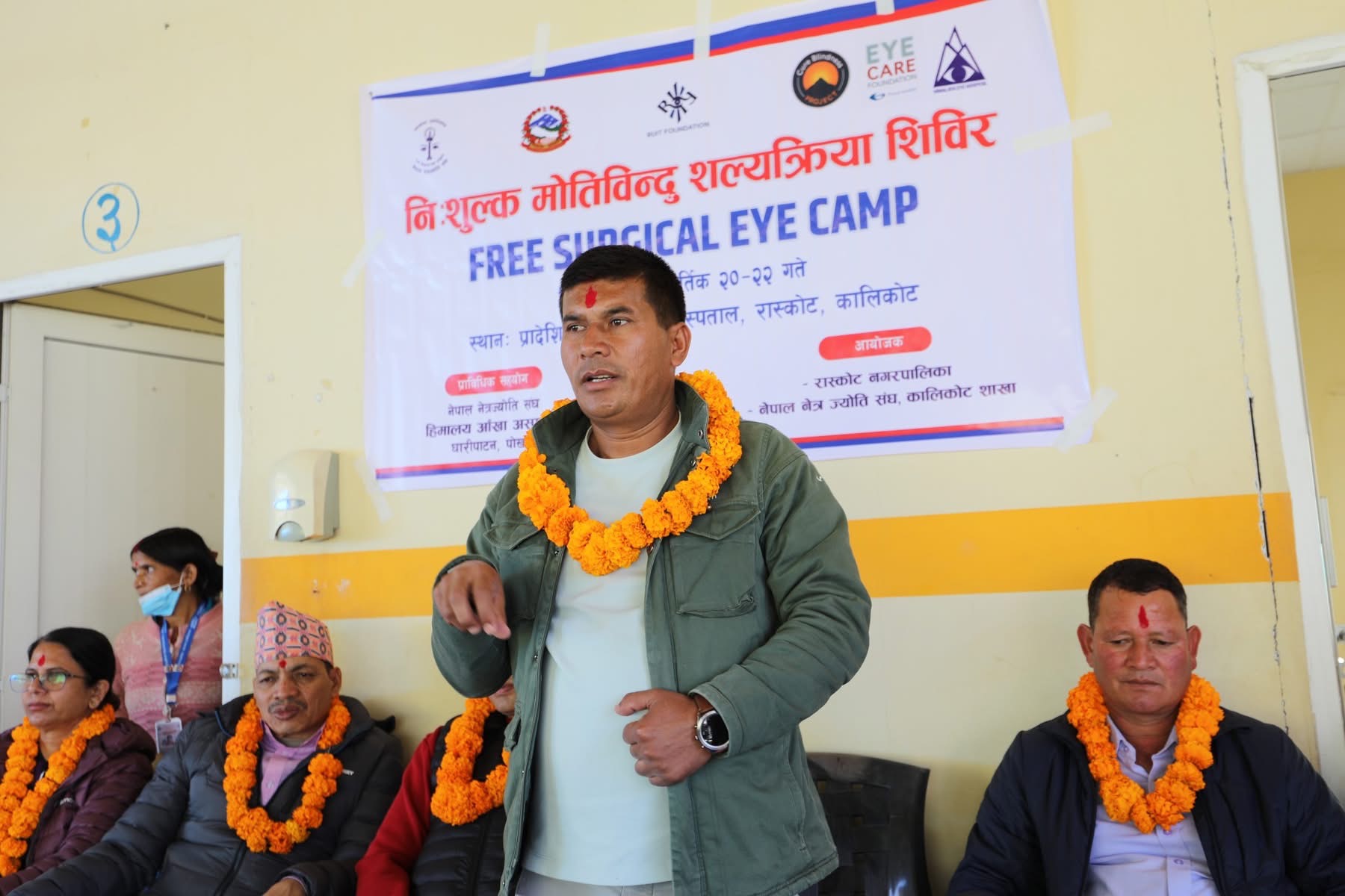 नेपाल नेत्रज्योति संघ र हिमालय आँखा अस्पताल, घारीपाटन पोखराको प्राविधिक सहयोगमा सञ्चालन गरिएको शिबिर उद्घाटन कार्यक्रममा अस्पताल ब्यवस्थापन सिमितिका अध्यक्ष टक्क फर्सालको सभाध्यक्षतामा तथा रास्कोट नगरपालिकानगर प्रमुख धर्मराज शाही (पोषण)को प्रमुख आतिथ्यतामा उद्घाटन गरिएको हो ।